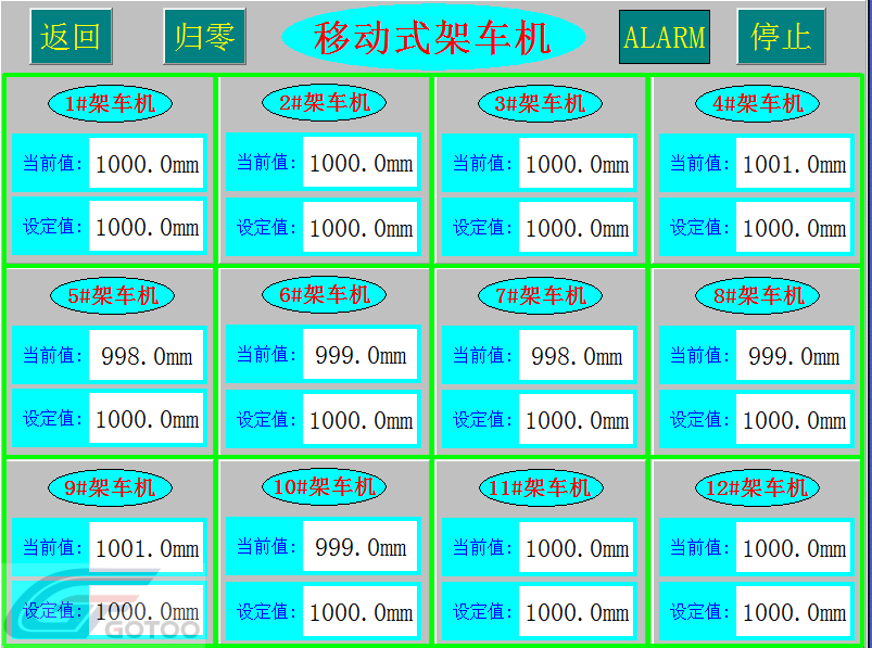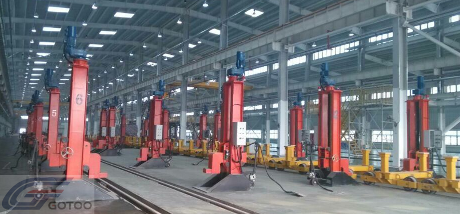 The equipment for the operation of a vehicle frame is called a group of carriage units. The full set of equipment consists of 6 sets of mobile rack cranes and 2 consoles, and the console can realize the function of 3 vehicles with synchronous racks.