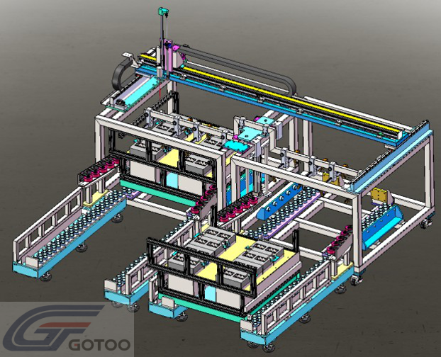 -- Frame structure design: easy access to the battery box, pick and place operations.